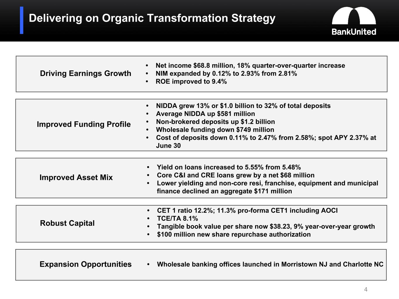 •As previously announced, we are excited about the launch of new wholesale banking offices in Morristown, NJ and Charlotte, NC.