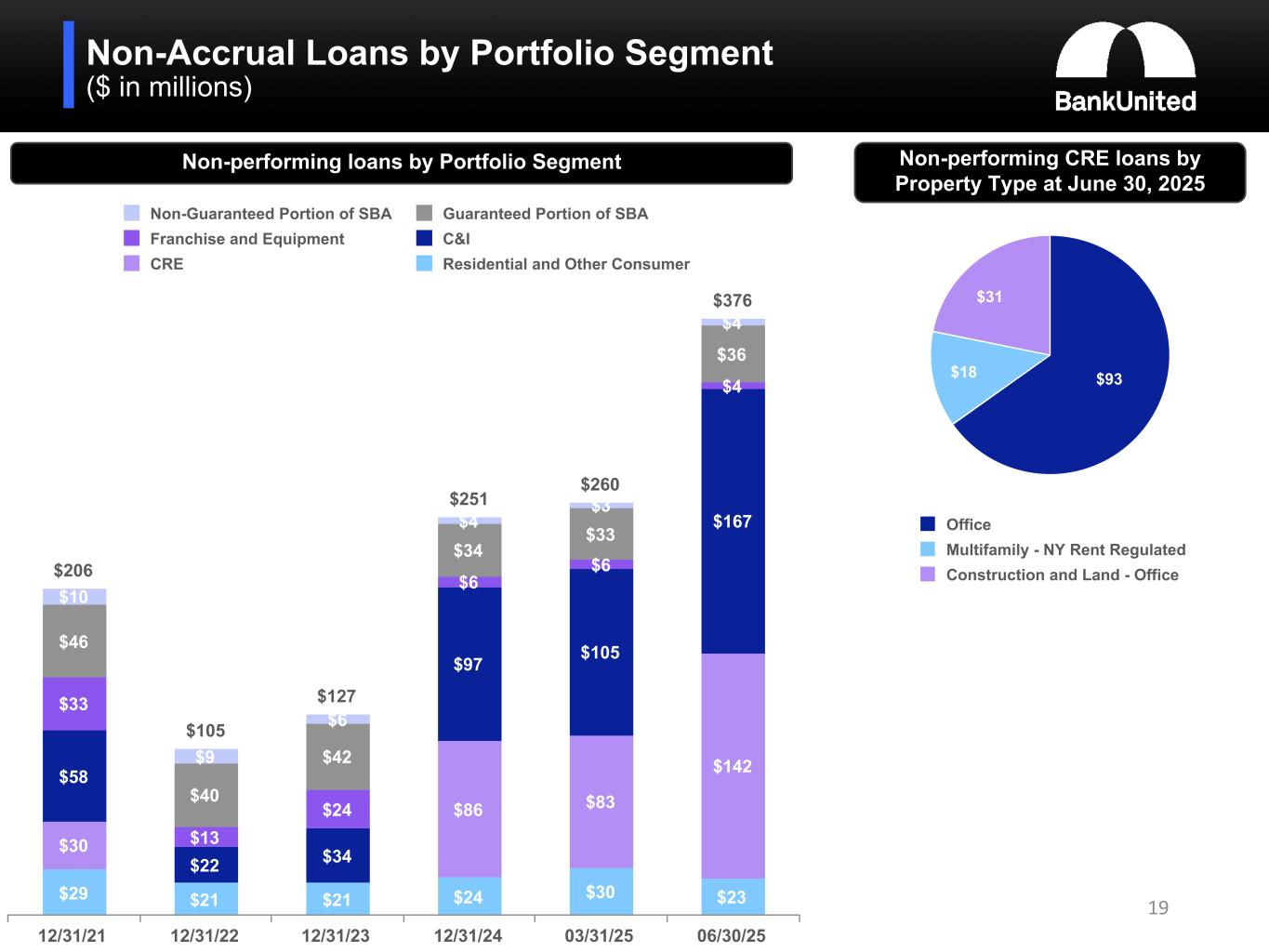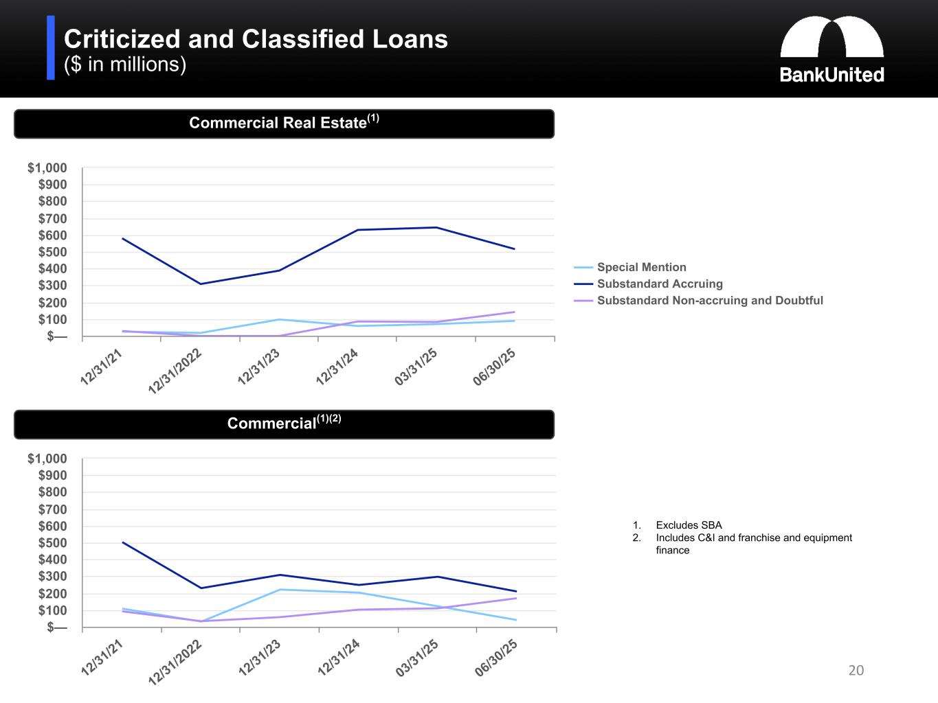 Non-Accrual Loans by Portfolio Segment ($ in millions) 19 $206 $105 $127 $251 $260 $376 $29 $21 $21 $24 $30 $23 $30 $86 $83 $142$58 $22 $34 $97 $105 $167 $33 $13 $24 $6 $6 $4 $46 $40 $42 $34 $33 $36 $10 $9 $6 $4 $3 $4 Non-Guaranteed Portion of SBA Guaranteed Portion of SBA Franchise and Equipment C&I CRE Residential and Other Consumer 12/31/21 12/31/22 12/31/23 12/31/24 03/31/25 06/30/25 $93$18 $31 Office Multifamily - NY Rent Regulated Construction and Land - Office Non-performing CRE loans by Property Type at June 30, 2025 Non-performing loans by Portfolio Segment